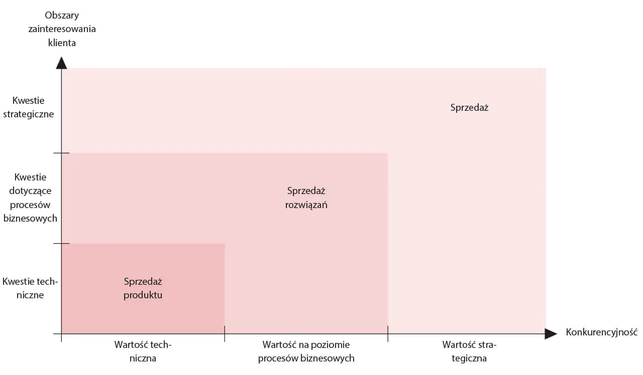 O co tu chodzi? Otóż na tym poziomie postrzegania działań handlowych, sprzedawca staje się nie doradcą, a partnerem strategicznym dla klienta. Nie zadaje sobie tylko pytania: jak rozwiązać ten problem? Idzie dalej – pyta: czy rozwiązanie tego problemu pomoże w rozwoju biznesu klienta? Czy skupienie się na tym problemie to kwestia priorytetowa dla klienta? Tak działający i myślący doradca pyta często: jak można temu klientowi pomóc rozwinąć biznes?