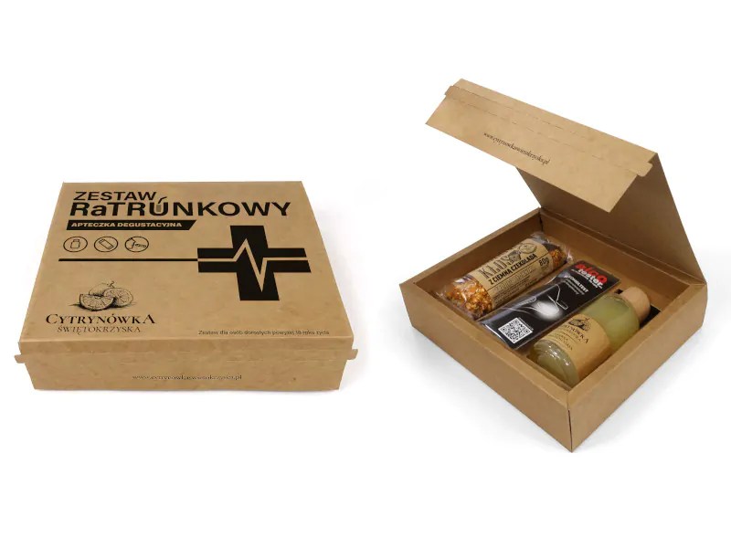 Zestaw Ratrunkowy, doskonały zestaw dla osób podróżujących. Składa się z batonu energetycznego firmy Pasieka Łysoń alkomatu firmy Freeman i naszej super cytrynówki świętokrzyskiej.