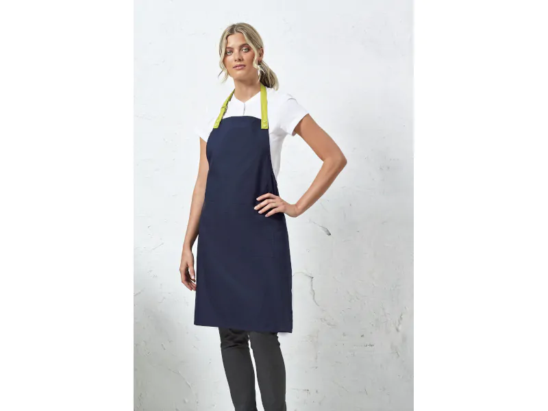 • fartuch PW190 w 10 kolorach • 20 wymiennych pasków PW191 do wyboru ułatwiających dopasowanie do kolorów firmowych • uchwyt na ściereczkę • wykonane w 65% z poliestru z recyklingu • środkowa kieszeń o wymiarach 34 cm x 21 cm