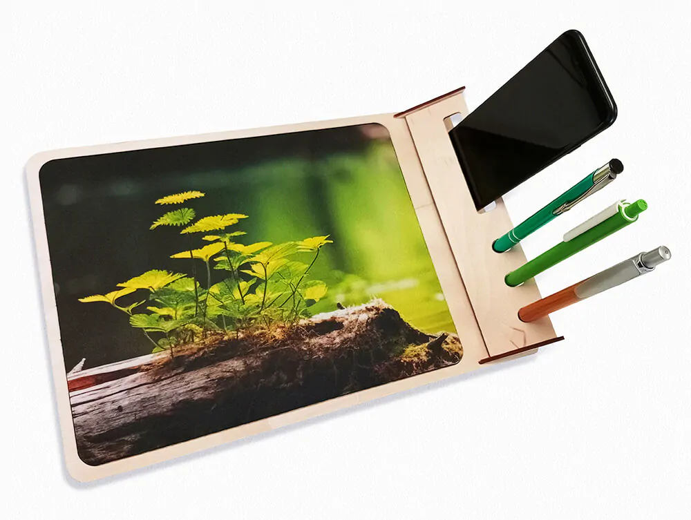Bliżej natury – elementy drewniane ocieplają wnętrze i nadają mu wyjątkowy charakter, stąd pomysł, by do podkładki pod mysz także dodać elementy, które ocieplą wnętrze, a jednocześnie będą miały praktyczne zastosowanie.