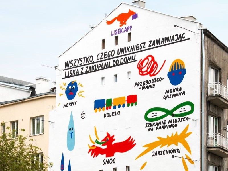 Mural w charakterystycznym stylu Chromrego w humorystyczny sposób przedstawia wady codziennych zakupów offline i prezentuje Lisek.App jako lepszą alternatywę. Mural stanowi punkt otwarcia fazy teaserowej kampanii, która potrwa do końca września. Projekt zostanie wykorzystany także w innych formatach – na plakatach, w pocztówkach i naklejkach dodawanych do zamówień oraz w komunikacji w mediach społecznościowych.
