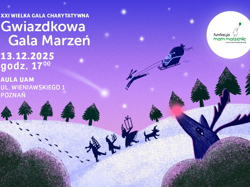 Ten piękny koncert jest pewnym podsumowaniem oraz zaprezentowaniem organizacji osobom, które dotychczas jej nie znały. W Auli Uniwersytetu im. Adama Mickiewicza w Poznaniu rozbrzmiewać będzie muzyka i spełnią się dziecięce marzenia. Nadchodzące wydarzenie będzie wyjątkowe – w świątecznej oprawie, która poruszy każde serce. Na scenie wystąpią znani artyści: Kasia Wilk, Marta Podulka oraz Marcin Sójka, którym towarzyszyć będzie pełen energii i pasji chór Gospel Joy. Razem wyczarują atmosferę pełną ciepła, światła i wiary w moc spełnionych marzeń. Galę poprowadzą Ida Nowakowska-Herndon oraz Rafał Zawierucha, którzy zadbają o dobrą energię, humor i wzruszenia. Dochód z wydarzenia zostaje w całości przekazany na realizację marzeń chorujących dzieci.