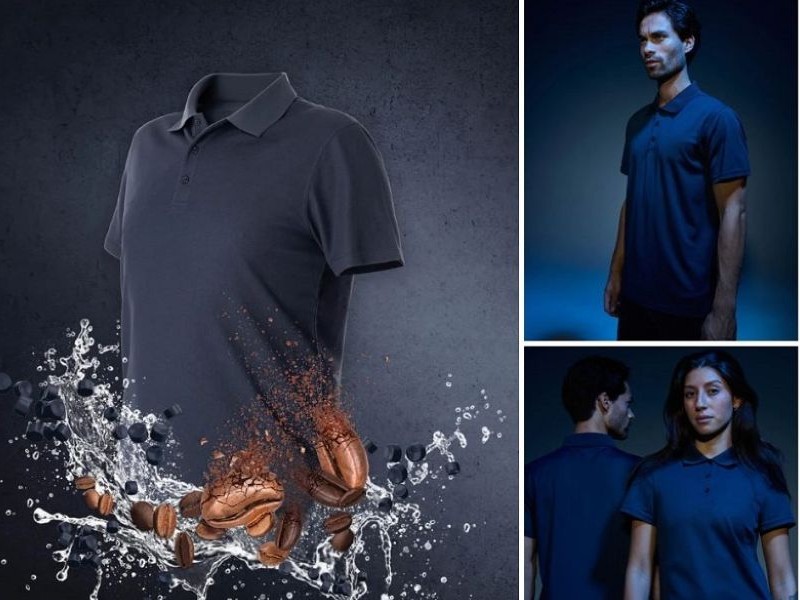 Poliester pochodzący z recyklingu plastikowych butelek i odpadów tekstylnych jest łączony z karbonizowanymi fusami z kawy, aby stworzyć wysokowydajną przędzę o doskonałej oddychalności, neutralizacji zapachów, ochronie przed promieniowaniem UV i najwyższym komforcie użytkowania. Integracja węgla aktywnego z fusów kawy tworzy funkcjonalny materiał o wyjątkowym komforcie, który nadaje się do recyklingu.