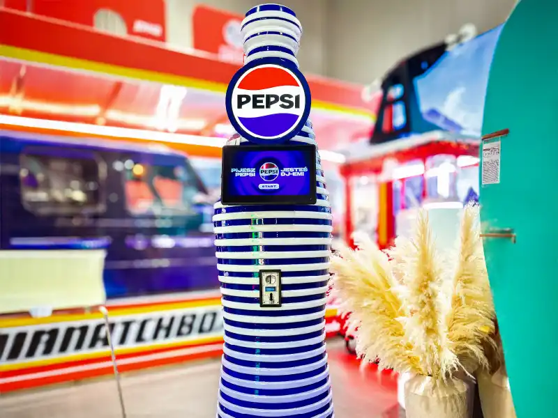 Projekt rozpoczął się od koncepcji kreatywnej przygotowanej przez dział projektowy. Po zatwierdzeniu projektu przeszliśmy do fazy prototypu, w której dopracowaliśmy każdy element pod względem technicznym i wizualnym. Zastosowaliśmy trwałe, a jednocześnie lekkie materiały o wysokiej jakości wykończenia. Produkcja odbyła się w naszym zakładzie, co pozwoliło nam kontrolować każdy etap i zachować spójność efektu końcowego. Finałem jest display, który nie tylko przyciąga wzrok, ale też tworzy atmosferę, pozwala odbiorcy „usłyszeć” markę Pepsi.