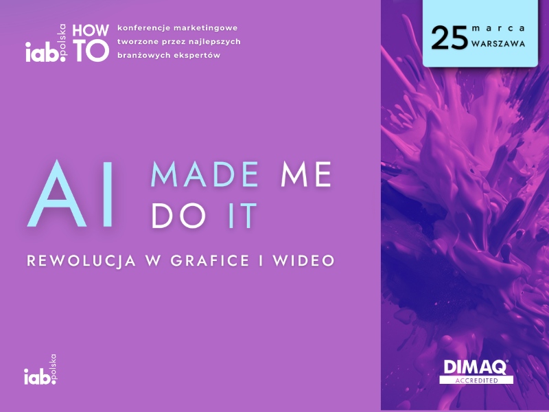 Nadchodząca edycja konferencji IAB HowTo: AI Made Me Do It – Rewolucja w grafice i wideo – w całości poświęcona będzie praktycznemu wykorzystaniu narzędzi generatywnych w grafice, wideo i content marketingu. Wydarzenie, tworzone we współpracy z Grupą Roboczą AI IAB Polska, pokaże „kuchnię” procesów kreatywnych: od promptowania, przez generowanie i iteracje, aż po postprodukcję i wdrożenie kampanii.