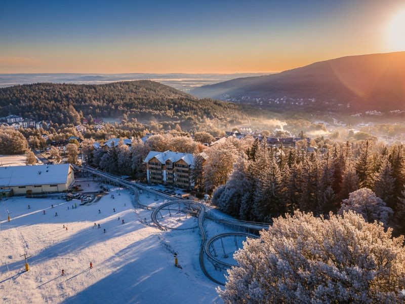 Bezpośrednio przy Forest Park Resort & SPA działa kompleks Ski & Sun z koleją gondolową na Stóg Izerski – przystosowaną do rowerów i sprzętu narciarskiego. Wjazd na szczyt to naturalny pretekst do rozmów w mniejszym gronie, a widok z góry zmienia perspektywę – dosłownie i symbolicznie. Zimą to dynamiczny ośrodek narciarski, latem punkt startowy dla trekkingów i wycieczek rowerowych. Ski & Sun Coaster – całoroczny tor saneczkowy przy dolnej stacji gondoli – dostarcza czystej adrenaliny i spontanicznej radości, przełamując formalny charakter wyjazdu.